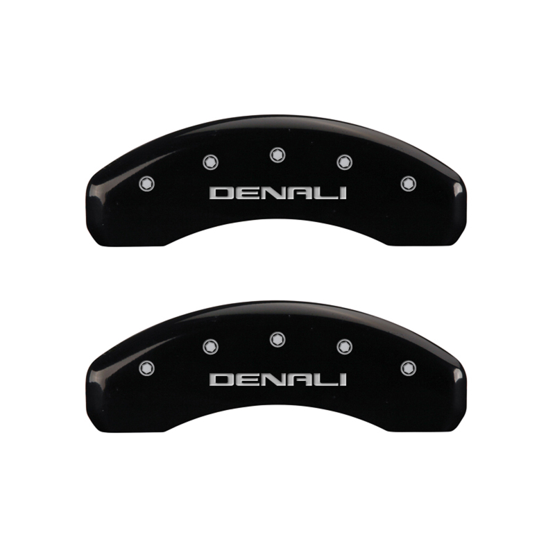 MGP 4 Caliper Covers Engraved Front & Rear Denali Black finish silver ch - 34004SDNLBK