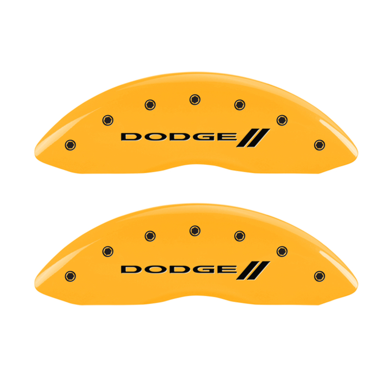 MGP 4 Caliper Covers Engraved Front & Rear With stripes/Dodge Yellow finish black ch - 12192SDD3YL