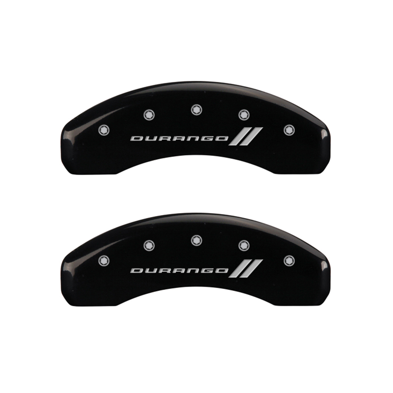 MGP 4 Caliper Covers Engraved Front & Rear With stripes/Durango Black finish silver ch - 12043SDGOBK