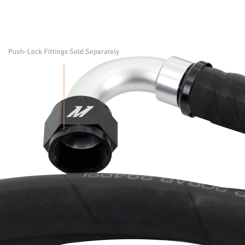 Mishimoto push-lock hoses are a fast and easy solution for creating high-quality, reliable lines for your custom build. Our push-lock hoses are constructed from chemical-resistant nitrile and CPE, making them perfect for a wide variety of applications including petroleum fuels, ethanol, oil, coolant, or air. Push-lock hoses offer simple installation with minimal tools and without the need for clamping in low-temp/low-pressure applications. Mishimoto push-lock hoses are rated for pressures up to 290 PSI and temperatures between -40F and 257F (-40C to 125C), making them ideal for use in a wide range of systems, vehicles, and locations. Available in sizes ranging from -4AN to -12AN and 10 ft or 20 ft lengths, Mishimoto has the push-lock hose to meet your needs. Like all our products, these hoses are backed by our Mishimoto Lifetime Warranty.