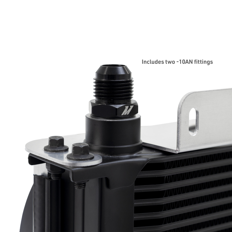 Mishimoto’s fully assembled 19-row universal oil cooler kit delivers efficient cooling for performance cars, trucks, and electric vehicles.--This kit features a stacked-plate style cooler paired with dual 5-inch fans and a natural aluminum fan shroud for consistent airflow and heat dissipation. Constructed from durable, corrosion-resistant aluminum, the cooler is built to handle the demands of any application. Female inlets and outlets allow for a wide range of fitting sizes, and the kit includes two -10AN fittings, brackets, and hardware for a straightforward installation.--Arriving ready to install right out of the box, this cooler is designed to help prevent overheating and protect your vehicle’s critical components. Like all Mishimoto products, it’s backed by our lifetime warranty.