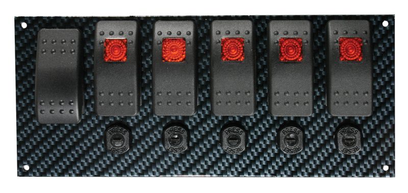 Product Description Moroso Rocker Switch Panel - Dash Mount - LED - 8in x 3-13/32in - Grey/Black Fiber Design