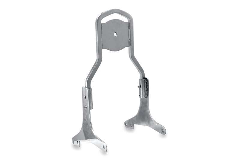 These pads will fit all Harley-Davidson and aftermarket bars with welded insert plates or with no center insert at all. A perfect match to a new Mustang seat, all pads have carpeted backs, chrome brackets, and screws. All pads feature two chrome straps, but only 9" tall pads have a threaded center hole for blind mounting plus the optional top bracket.