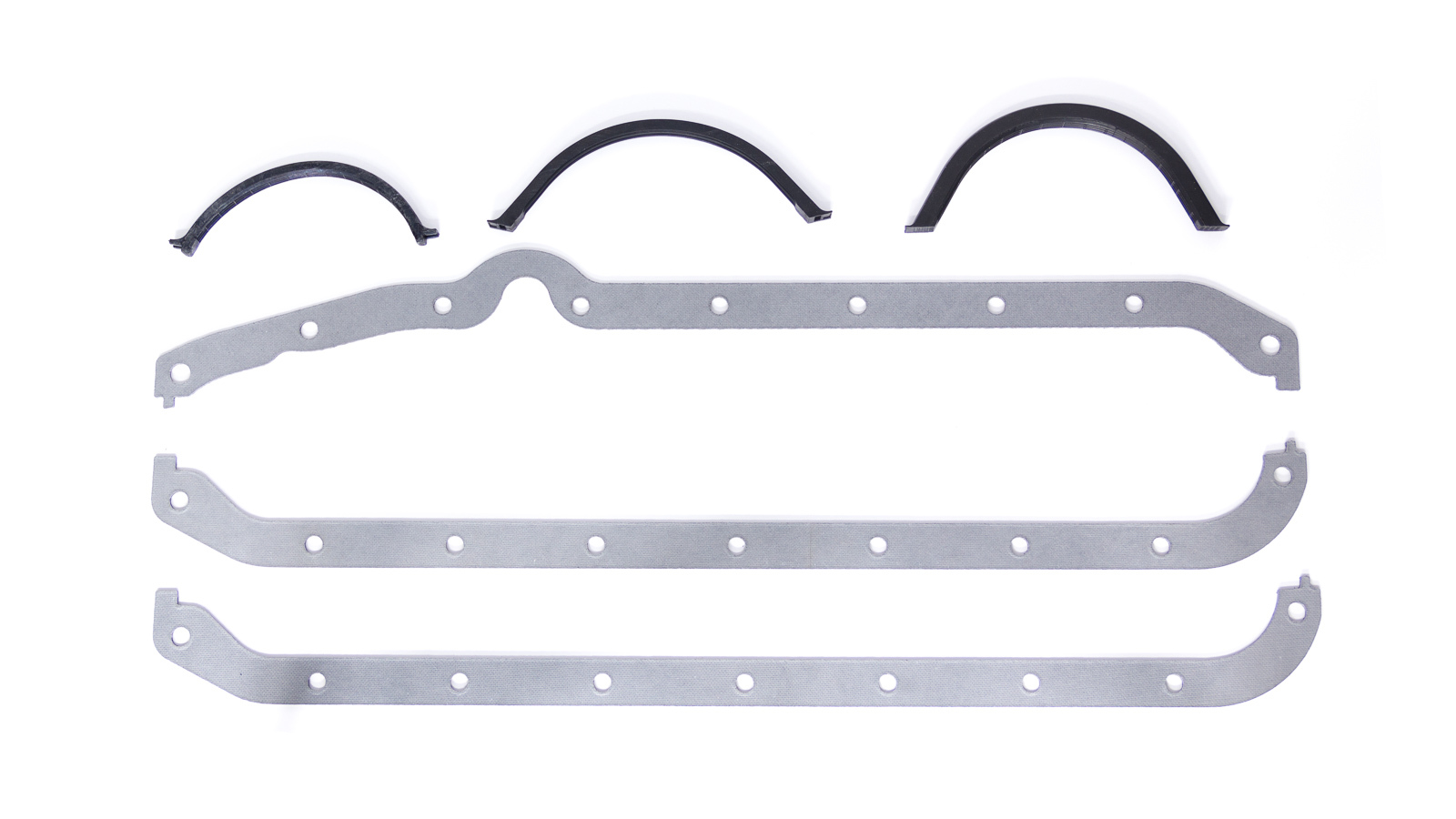 Product Description Oil Pan Gasket - Multi-Piece - Fiber - Driver Side Dipstick - Small Block Chevy - Kit