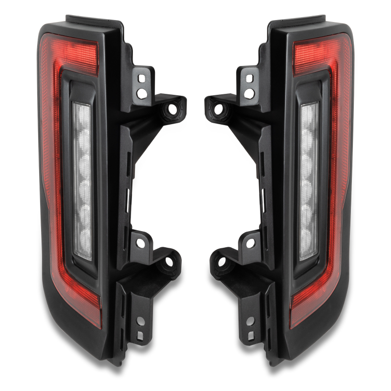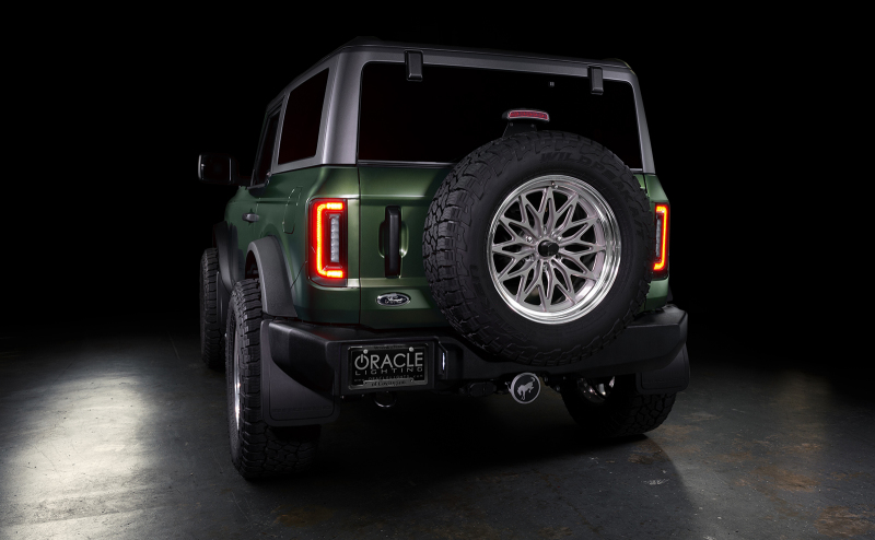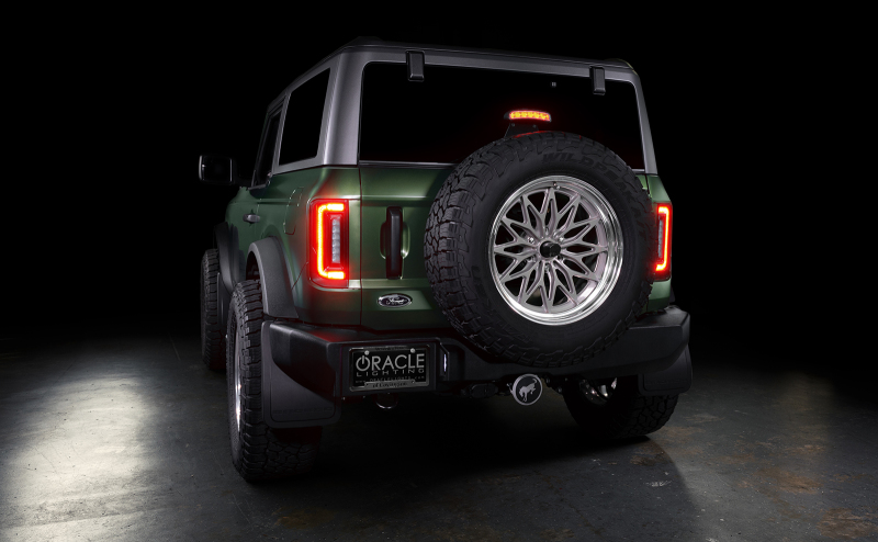 ORACLE Lighting is excited to reveal our new flush mount LED tail light design for the new Ford Bronco. Protruding out significantly less than the factory tail lights, this low-profile design helps avoid potential damage while trail riding. These Ford Bronco tail lights feature an attractive design and functional LED lighting elements including high-powered reverse lights and unique signature perimeter lighting. No more problems backing up at night because these LED reverse lights are basically a pair of LED light bars mounted into the tail light which will provide over 8,000 Lumens of rear-facing illumination. This innovative design wraps tightly around the truck. Because of the nearly flush wrap-around design, the lighting can be visible from any rear angle, making it a unique solution for the Bronco. These flush tail lights provide improved aesthetics and functional LED lighting features including high-powered reverse lights and signature perimeter lighting. As you can see in the animation below, these lights wrap tightly to the vehicle body providing a Flush mount design which not only looks great but is functional as well. Damaging factory tail lights on trails is not an uncommon issue for owners who often off-road their Broncos. The factory design protrudes out several inches past the body which creates unnecessary exposure to trees, boulders, and other obstacles on tight trails. The frame of the ORACLE Lighting Flush Mount LED Tail Light for the Ford Bronco is tight to the body panel reducing exposure and vulnerability. Even if you don't off-road your Bronco often, these lights provide plenty of innovative features and unique styling -- which make them an awesome mod for any Bronco owner. Gain sleek styling that compliments the original body lines and tons of innovative features. With the superior quality and durability that ORACLE Lighting is known for, these tail lights are the perfect upgrade for your Bronco!