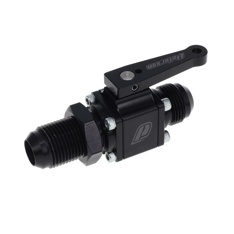 Peterson Fluid Systems has produced the best shut off ball valve in the racing industry. Produced from aircraft quality aluminum, these valves utilize hardcoated aluminum balls and bodies along with PTFE seals. Available in several combinations, these valves make fuel and oil shut off easy, with full flow when opened.