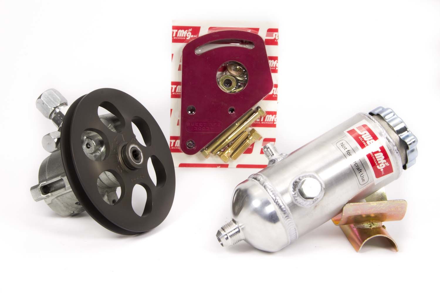 Product Description Power Steering Pump - GM Type 2 - 3 gpm - 1300 psi - Driver Side Block Mount / HTD Pulley Included - Steel - Natural - Small Block Chevy - Kit