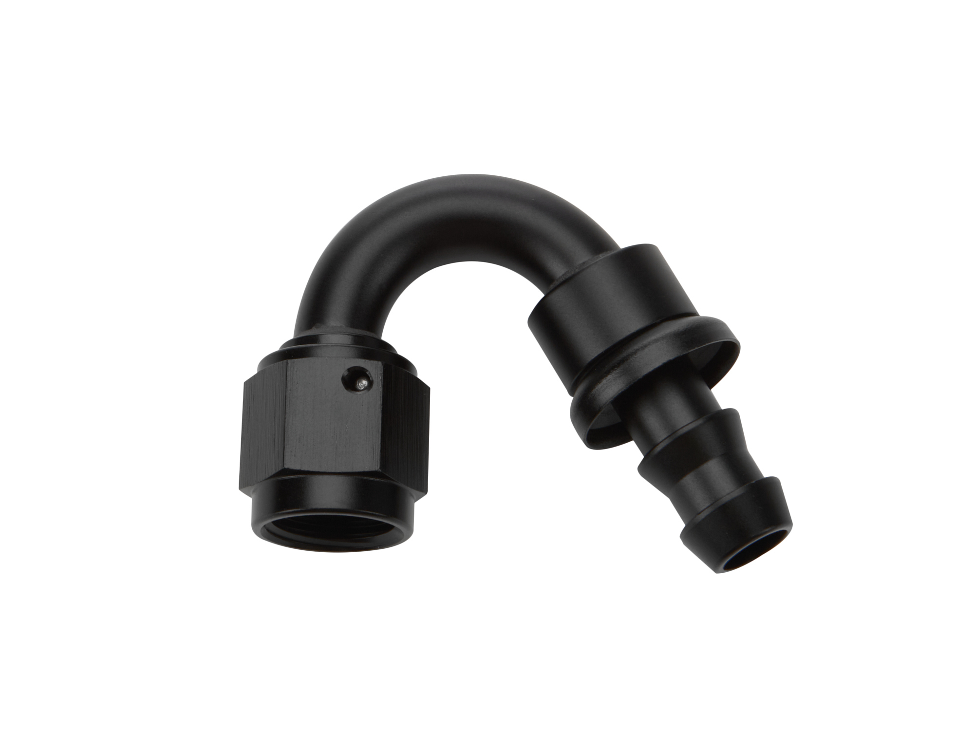 Product Description Fitting - Hose End - 150 Degree - 6 AN Hose Barb to 6 AN Female - Aluminum - Black Anodized - Each