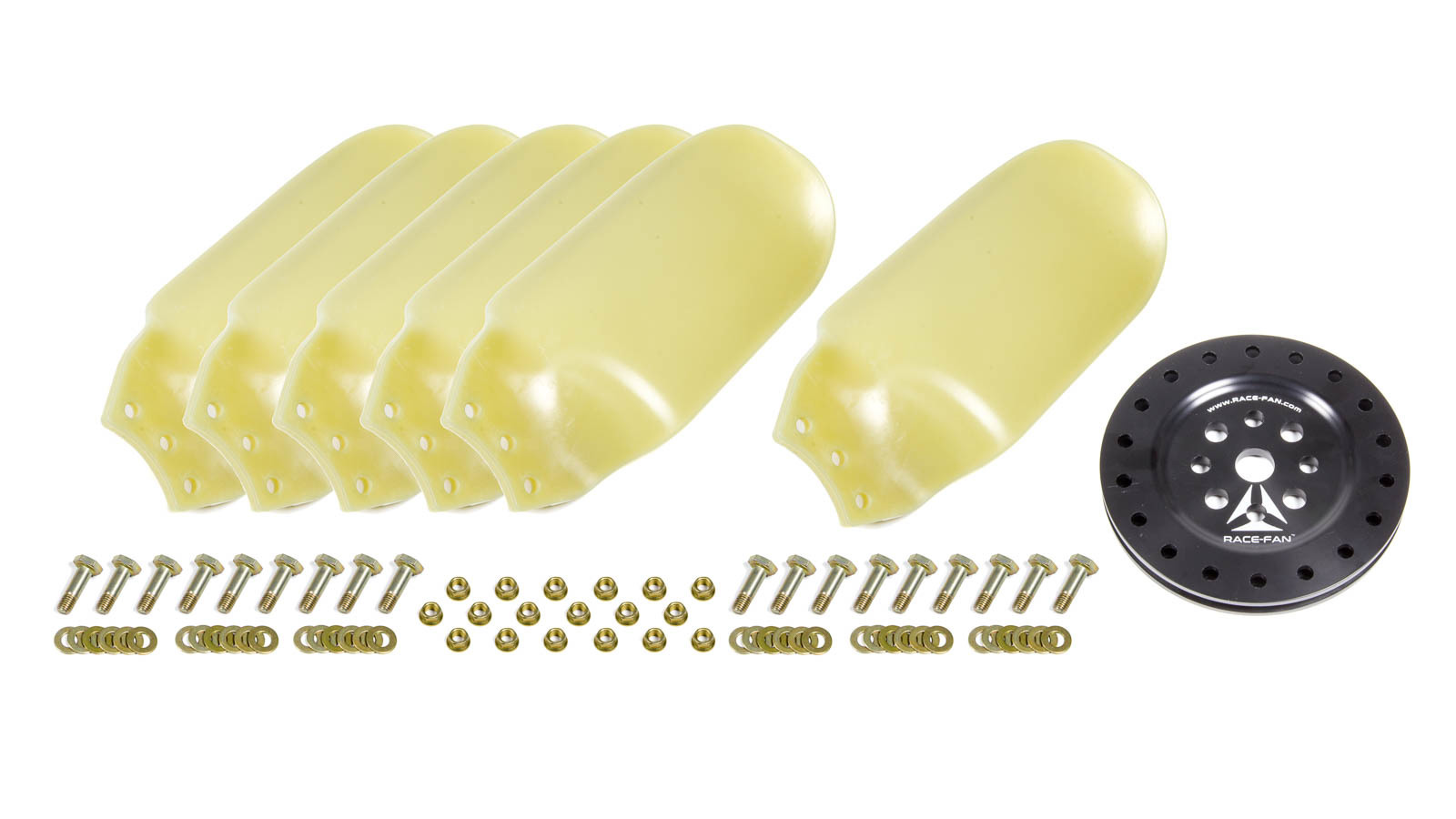 Product Description Mechanical Cooling Fan - 19 in Fan - 6 Blade - 3/4 in Hub - Universal Bolt Pattern - Aluminum Hub / Plastic Blades - Black / Natural - Kit