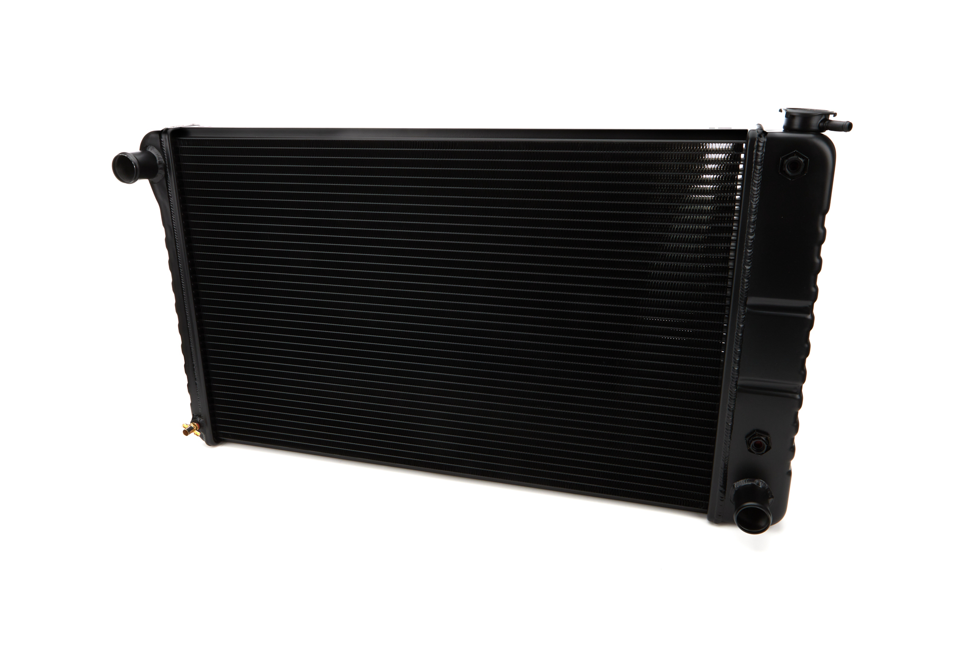 Product Description Radiator - Direct Fit - 34.5 in W x 18.625 in H x 3.375 in D - Single Pass - Driver Side Inlet - Passenger Side Outlet - Aluminum - Black Paint - GM A-Body 1968-71 - Each