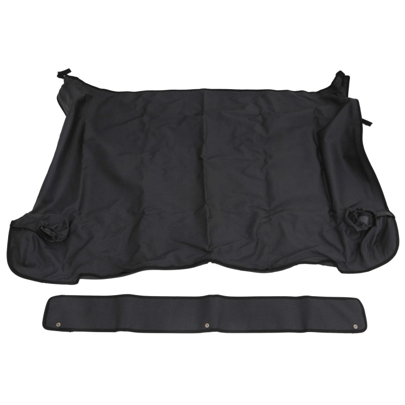 Rear Tonneau Cover protects the back storage compartment from the elements and prying eyes. Installation to factory belt rail system and rear tailgate bar. Also, a front attachment to the cab rear window panel with a heavy-duty zipper that includes a velcro flap cover to fully seal the rear compartment. Sleek looking tight fit eliminates flapping in the breeze. Constructed from a durable soft top material and custom sleeve seals around the roll bar.