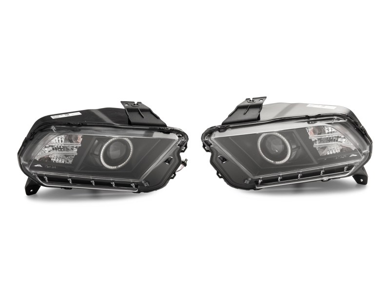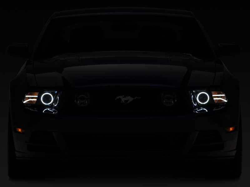 Transform the appearance of your 2013-2014 Mustang's front end by installing a set of Raxiom Projector Headlights. These Projector Style Headlights have an intimidating design that works well with the lines of your S197 Mustang to produce a sleeker appearance. These lights not only look great, but will also help to enhance nighttime visibility when compared to stock. Raxiom designed these Headlights with projector lenses to work in conjunction with your stock HID bulbs to light up the road ahead with a bright focused beam of light that will improve your nighttime visibility. The integrated LED Halo accent lights will give your Mustang a more exotic appearance that will separate it from the boring herd of look-a-likes. Raxiom manufactures its headlights to precise standards from OEM quality materials. These Projector Headlights feature durable, black plastic housings with crystal clear lenses and modern LED accent lighting. Each light is sealed to prevent dirt and moisture from harming the state of the art electronics. Raxiom designed its Projector Headlights to be a direct plug and play replacement for your Mustang's original factory housings reusing the factory HID System. There is no cutting or modifications required for a clean, straight forward install. However, it should be noted that you will need to lower the front fascia in order to gain access to the mounting bolts.