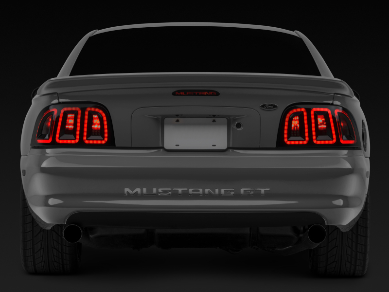 Bring your 1996-1998 Mustang into the 21st Century with a set of Raxiom Icon Tail Lights. These Raxiom Tail Lights will add the bold iconic styling of the fifth generation Mustang to your very own ride. Featuring built-in modern LED technology that is used for both the reverse and running light rings, these Raxiom Icon Tail Lights will dramatically transform the appearance of your SN95 Mustang. Raxiom Icon LED Tail Lights are manufactured using state of the art LED electronic components with a simple plug-in connector that easily inserts into the stock wiring (or Raxiom sequential) tail light harness for a simple straight forward installation. The high intensity LED running light rings of these Raxion Icon Tail Lights not only look great, but they also improve your driving safety as they are much brighter than the standard factory incandescent bulbs making sure you are clearly seen at night. These Raxiom Icon LED Tail Lights are designed to work with your existing Raxiom Sequential Tail Light Harness to give your SN95 Pony the high tech styling of the late model Mustangs. If you would like a slower speed for the sequence of your tail lights to get that modern muscle car styling, combine this sequential tail light kit with the Raxiom Turn Signal Flasher V1 (For Incandescent Bulbs) or Raxiom Turn Signal Flasher V2 (For LED Bulbs). Raxiom Icon LED Tail Lights not only improve the appearance of your Mustang, but they also meet or exceed the strict guidelines set forth by the U.S. Department of transportation (DOT) making them DOT compliant under compliance# QR1300191. These Raxiom Tail Lights can be used on 1994-1995 Mustangs when installed with a tail light wiring harness from any 1996-1998 Mustang. Bulbs are not included. These tail lights reuse the stock bulbs or you can upgrade to Raxiom LED Tail Light Bulbs. Raxiom LED Tail Light Bulbs will require the use of a Raxiom Modified Turn Signal Flasher for proper operation.