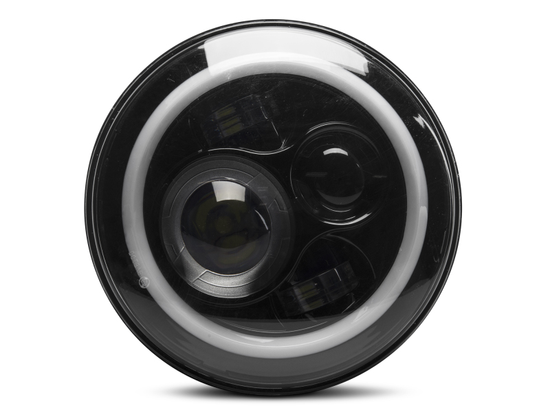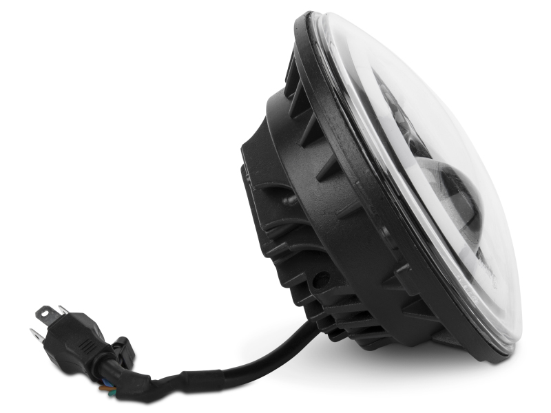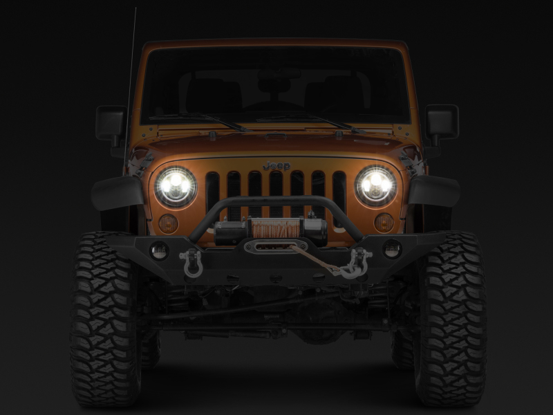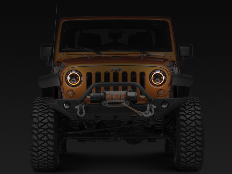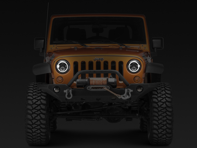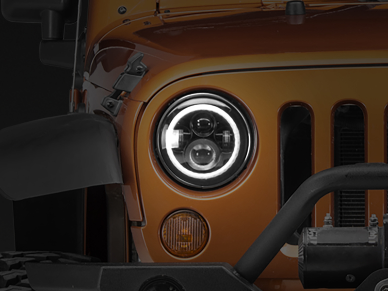 Upgrade the appearance and visibility of your Jeep Wrangler with a set of Axial LED Halo Headlights. These Axial Headlights feature a great looking integrated dual function accent halo. The halo functions as both a Day Time Running Light (DRL) and as a Turn Signal Indicator. The halo glows white as a DRL and amber when active as a turn signal. These Axial LED Headlights will certainly be much brighter than your stock headlights and feature a 6000K cool white color temperature. Featuring premium high output LEDs, these Axial Headlights out put 5400 lumens for the High Beams and 3600 lumens for the Low Beams. With a 60% lower power consumption than standard headlights, these LED Lights have a life span of up to 50,000 hours. Designed to perform in the harshest of elements, these Axial Headlights feature a rugged housing with a tough as nails clear polycarbonate lens. Each Headlight is epoxy sealed to prevent moisture from harming the state of the art electronics found inside. These Axial LED Headlights can take just about anything the trail can throw at them. With the included H4 - H13 wiring harness adapters (needed for 2007+ models) installation can be completed in under 30 minutes. It should be noted that the DRL/Turn Signal halo light will require additional wiring for operation. Installation instructions are included. These Axial 7-Inch Round LED Halo Headlights pass both DOT (U.S. Department of Transportation) certification and SAE (Society of Automotive Engineers) certification requirements making legal for street use. These aftermarket LED Headlights are intended for use with factory halogen headlight equipped models. In order to use these aftermarket LED Headlights on a Jeep that is already factory equipped with LED headlights, you will require a set of factory halogen headlight buckets – not included.