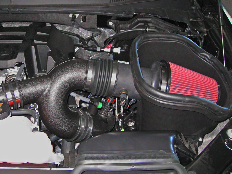Your F-150 will benefit greatly from the addition of this ROUSH Cold Air Intake Kit, which provides more efficient air intake than the stock air box. Providing up to 25% less intake restriction than stock in forced induction applications, this cold air intake kit ? the most highly-engineered kit of its kind on the market ? increases engine performance by over 28 RWHP and 27 ft-lbs RWTQ (tested on 2016 3.5L EcoBoost platform) with no PCM re-calibration required!The kit features increased inlet and air box sizing to allow for maximum airflow, and provides an additional induction noise and aggressive performance sound. It was designed using OEM CAD data to guarantee optimized fitment, keeping heat out and encouraging maximum performance. Our high-flow, high-capacity dry filter requires no oiling and is easily washable for re-use.