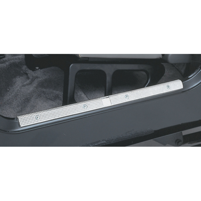 Protect your door threshold with these stylish entry guards. They enhance the look of your Jeep while providing the ultimate in protection. Attaches with screws and double sided tape. Sold as a pair.