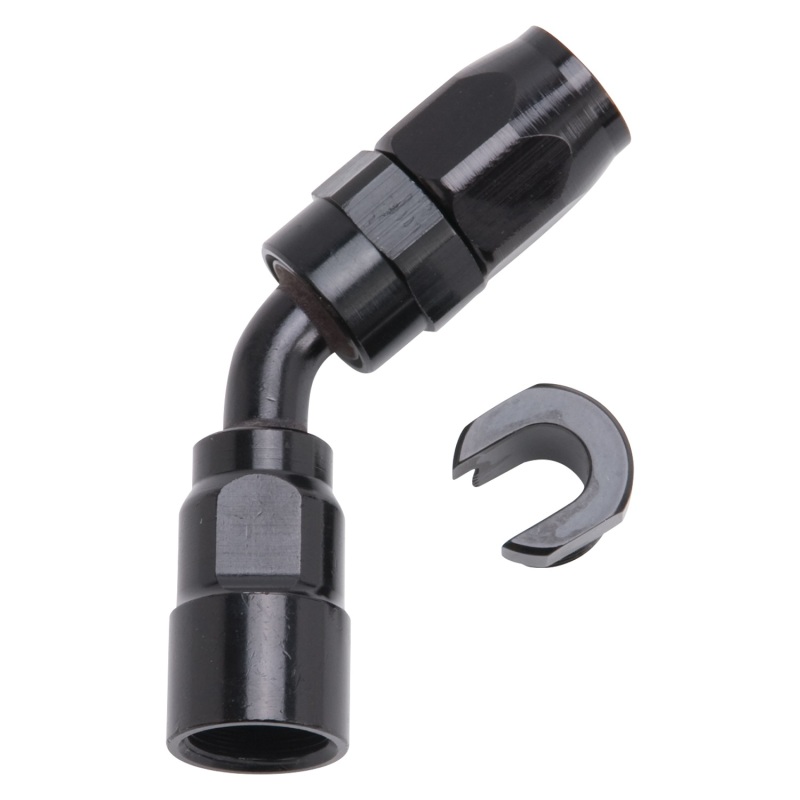Russell Performance 5/16in SAE Quick Disc Female to -6 Hose Black 45 Degree Hose End - 611263