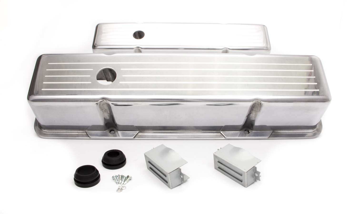Product Description Valve Cover - Tall - 3.688 in Height - Ball Milled - Baffled - Breather Holes - Grommets Included - Aluminum - Polished - Small Block Chevy - Pair
