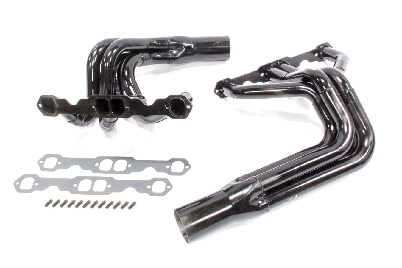 Headers - IMCA Modified - 1.75 to 1.875 in Primary - 3.5 in Collector - Gaskets / Hardware Included - Steel - Black Paint - Small Block Chevy - Pair