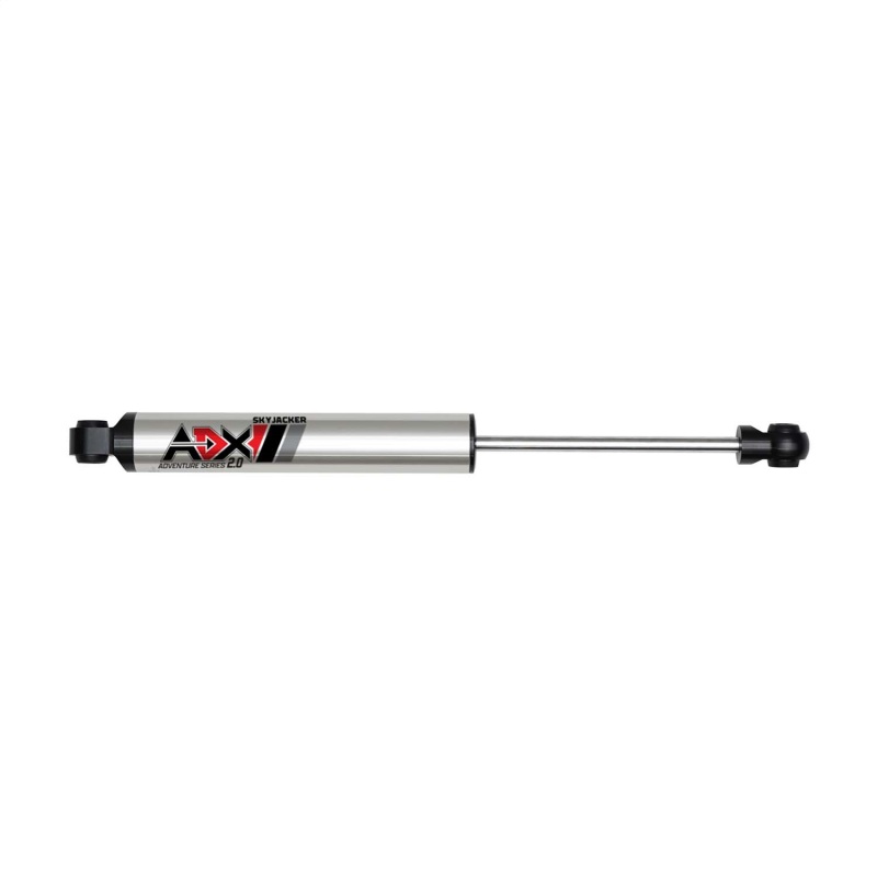 Skyjacker(R) HD OEM Steering Stabilizer is a dampening shock for your steering system. It dampens out the harshness of the highway and places control back into the driver's hands. Controlling the terrain helps reduce the physical fatigue of fighting the road. Improves steering response time and allows you to enjoy the drive. CNC machined 6061-T6 polished aluminum hard anodized cylinder body ADX 2.0 stabilizer with 30mm bore & 14mm piston rod provides specific valving needed with equal compression and extension damping performance. The dampening control also adds life to tires, tie rod, ball joints and other steering components. CNC machined 6061-T6 polished aluminum hard anodized body and caps for superior rust resistance. CNC machined 6061-T6 polished aluminum hard anodized body dissipates heat up to 30% faster than traditional steel body steering stabilizers. Internal high performance fade resistant gas cell yields longer life, improves handling, & performance.