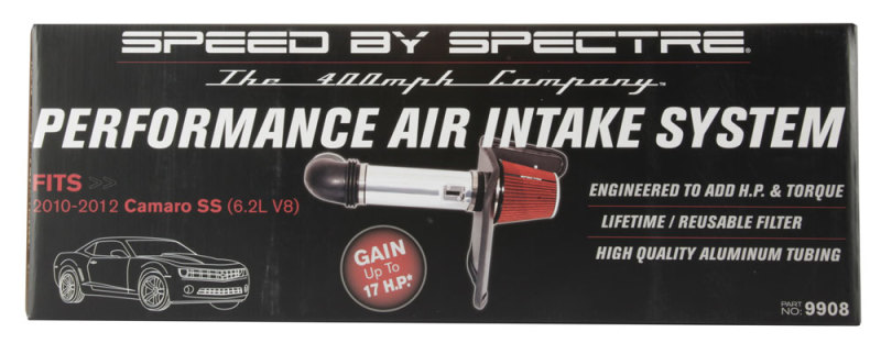 Spectre air intake systems are designed to get more horsepower and torque from your vehicle while working to protect your engine from harmful debris. This air intake system comes with a washable, reusable low restriction Spectre air filter, polished aluminum intake tubing and a black powder coated 2-piece heat shield to help prevent heated engine air from entering the intake inlet. Spectre air intakes come with couplers, stainless steel clamps, and all necessary hardware for an OE fit and finish. The stock MAF sensor and vent hose mounts on the intake tube.