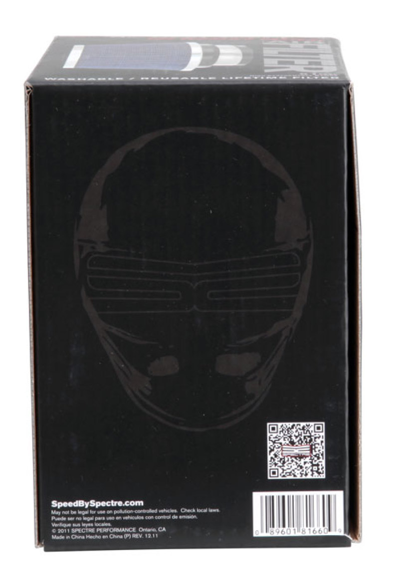 This Spectre High Performance Racing (HPR) Air Filter is a blue media clamp-on cone filter that can be used for a wide variety of applications. Using the included adapter rings, this filter can fit 3 inch, 3-1/2 inch, and 4 inch diameter tubes. Manufactured using high quality materials throughout, including oiled synthetic media, urethane, and steel mesh, this washable performance filter is precision engineered for low restriction and better performance. This filter's top houses an inverted cone filter for improved service life and enhanced flow potential. Designed with a triple chrome plated steel top and base, this 2-1/2 inch tall air filter is factory pre-oiled and ready to use.