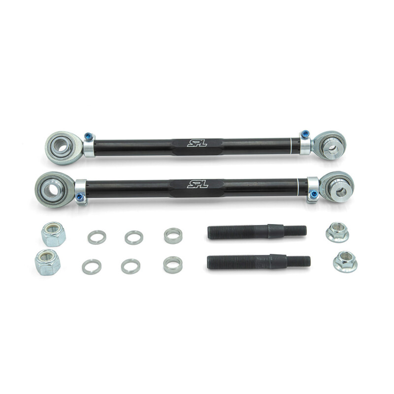 Porsche Rear Toe Arms (RTA) increase stability and response by eliminating bushing deflection and offer a wide range of toe and bump steer adjustment. When you lower your 996/997, the factory links create too much toe-in that cannot be adjusted out. This creates handling problems and excessive tire wear. These arms are designed for use in high performance street and race vehicles