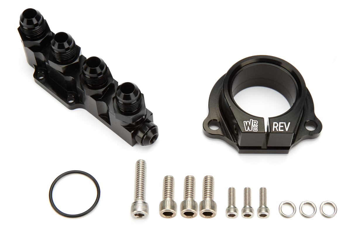 Product Description Fuel Pump Fitting Kit - Four Port 6 AN Manifold - Pump Swivel Mount - 3-Blolt - Aluminum - Black Anodized - Kit