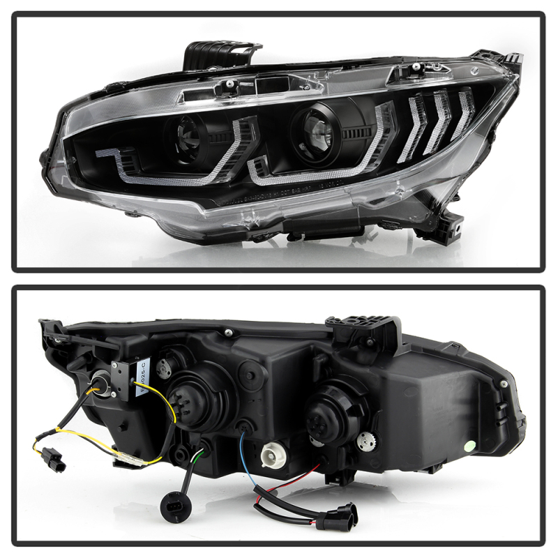 Spyder Honda Civic 16-18 2DR/4DR/Hatchback Headlight Black PRO-YD-HC16PL-SEQ-BK - 5087539