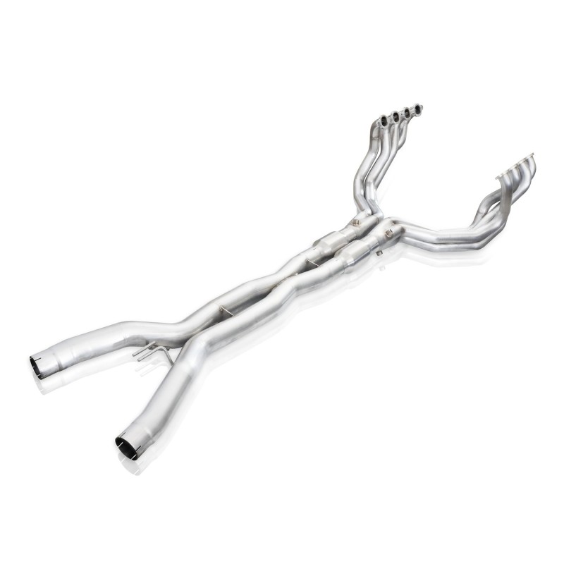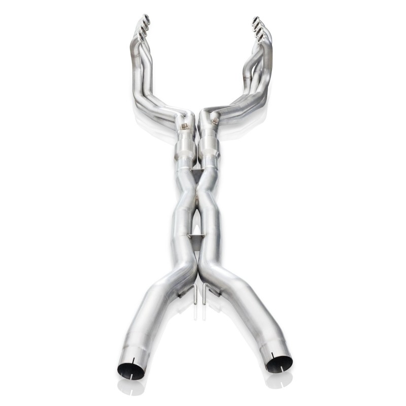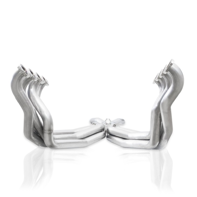 2014-18 Chevy Stingray, Grand Sport, ZO6, and ZR1, Corvette headers, 2" Diameter 31" long primaries and 3" Slip-fit collectors. Includes 3" High-flow catted center section with X-pipe. All tubes are CNC mandrel bent for optimal flow. Fits factory axle-back connection point. Mill finish, All TIG welded for strength and durability. These kits come with a lifetime warranty and proudly made in the USA.