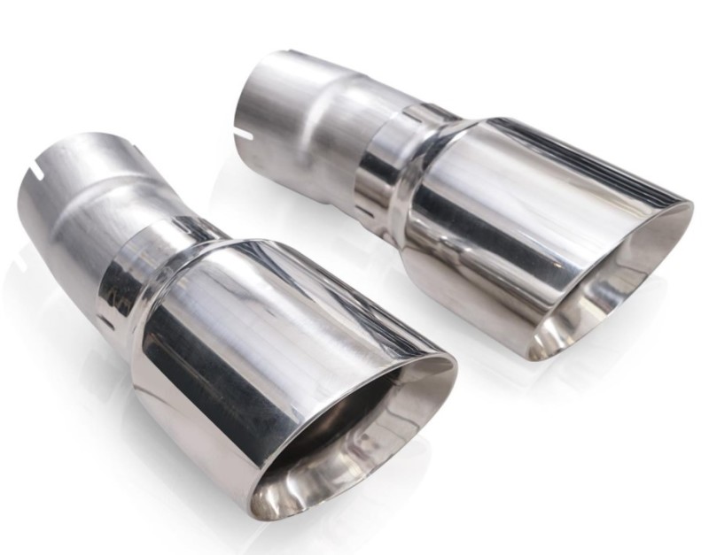 2011-20 Jeep Grand Cherokee 5.7L 4" Polished Tips to fit the Redline and Legend Catbak from Stainless Works. These tips are required for any vehicles that come stock with round tips from the factory.