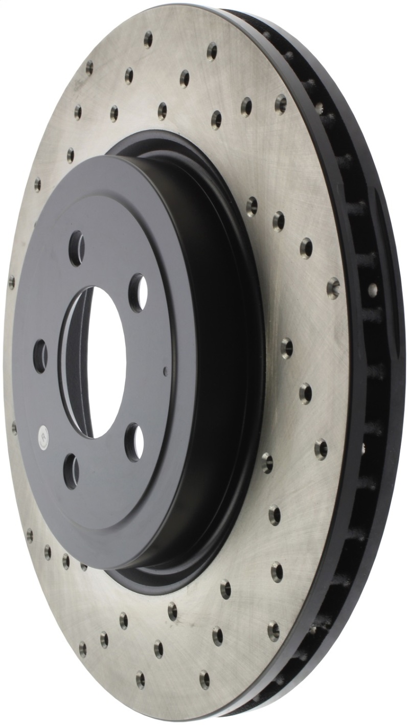 StopTech Drilled Sport Rotors are 1-piece direct replacement brake discs for factory brake systems and stock calipers that look great behind your wheels – and offer significantly improved braking performance. The unique cross-drilling aids with heat and brake dust dispersal; prevents glazing of the pads; adds bite and improves wet and dry braking performance. Built to last; the black e-coating provides protection from corrosion and the high carbon metallurgy (in most applications) offers quieter operation; better crack resistance and increased performance.