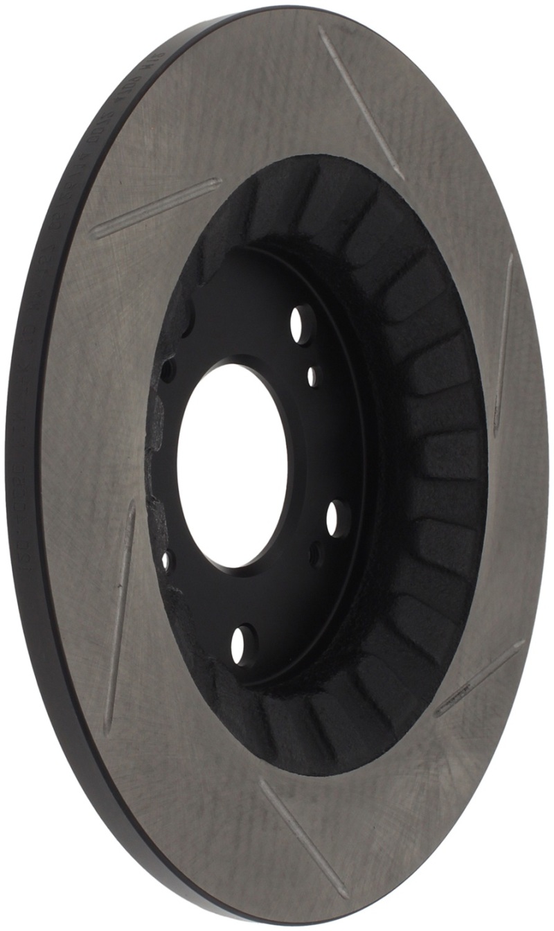 StopTech Slotted Sport Rotors are 1-piece direct replacement brake discs for factory brake systems and stock calipers that look great behind your wheels – and offer significantly improved braking performance. The unique slotting aids with heat and brake dust dispersal; prevents glazing of the pads; adds bite and improves wet and dry braking performance. Built to last; the black e-coating provides protection from corrosion and the high carbon metallurgy (in most applications) offers quieter operation; better crack resistance and increased performance.