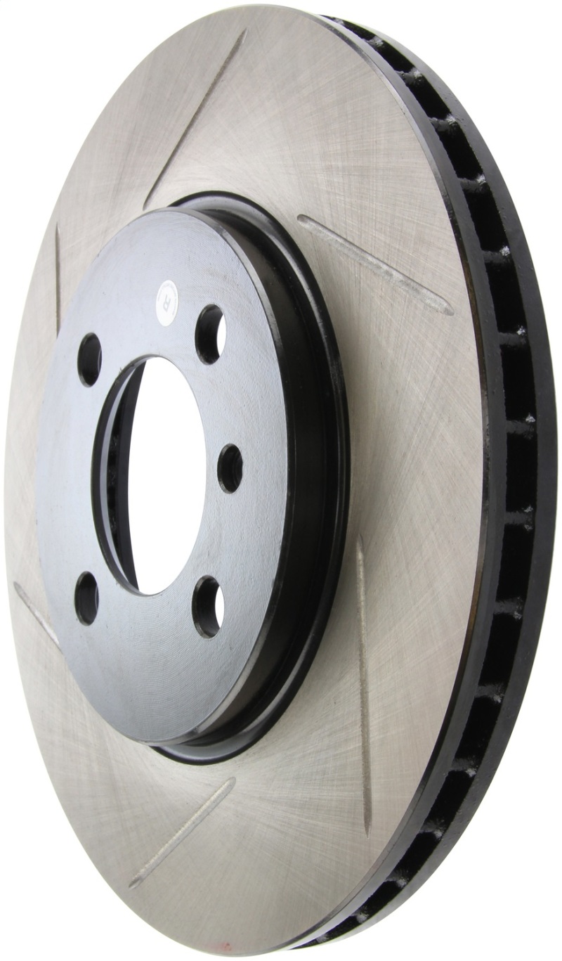 StopTech Slotted Sport Rotors are 1-piece direct replacement brake discs for factory brake systems and stock calipers that look great behind your wheels – and offer significantly improved braking performance. The unique slotting aids with heat and brake dust dispersal; prevents glazing of the pads; adds bite and improves wet and dry braking performance. Built to last; the black e-coating provides protection from corrosion and the high carbon metallurgy (in most applications) offers quieter operation; better crack resistance and increased performance.