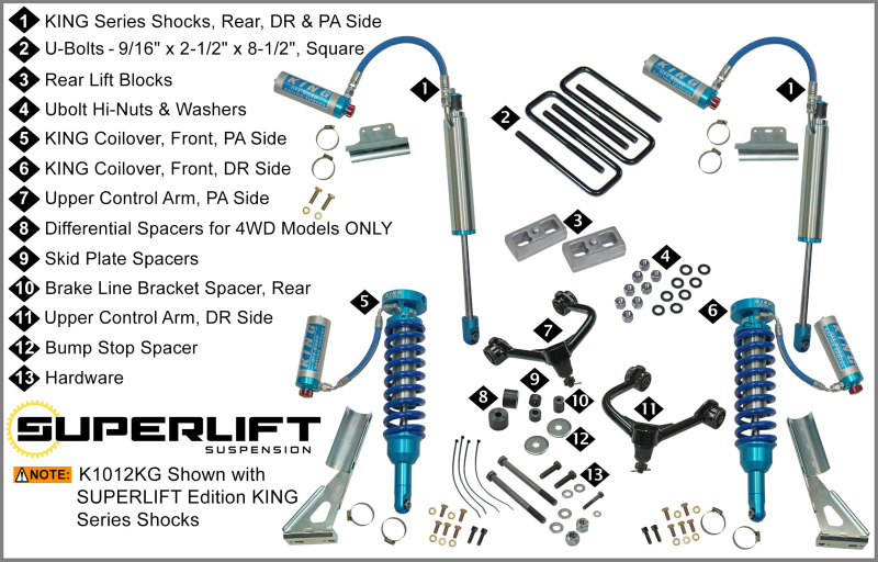 Let Superlift® upgrade your suspension and take your truck to the next level. With their high-quality lift kits and components, you’ll add clearance, improve handling, and achieve an aggressive, leveled stance. Go bold with Superlift®.Whether you’re looking to boost your stance, increase clearance, or improve handling, Superlift has the parts and kits to lift your ride to the next level. Their suspension lift kits come in a range of heights like 2-12 inches, so you can get the perfect lift for your needs and budget. Expertly crafted from heavy duty materials, their lifts offer unmatched strength and durability.