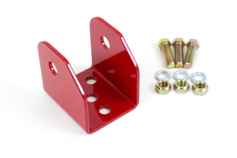 This new replacement rear control arm mount replaces the stock control arm mount that attaches the rear upper control arm to the vehicle chassis. This item works excellent when the factory mount is too rusted to re-use or when installing a 12-bolt 4-link set-up into a 3-link equipped vehicle. Replacement bracket is CNC machined from 0.188” thick steel plate, precision bent and supplied with a bright red or gloss black powder coat. Item includes new grade 8 hardware to complete installation.