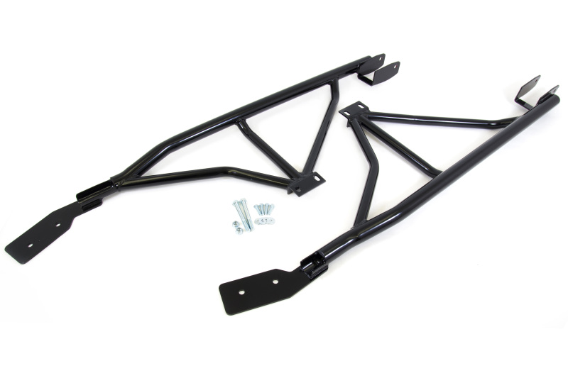 UMI offers the tightest fitting 3-Point subframe connector on the market. The USA manufactured subframe connector by UMI is designed to tuck tight against the vehicle floor preventing ground clearance loss and exhaust clearance issues. Unlike our competitors design the UMI 3-Point subframe connectors are bent and contoured to follow the floor pan of the car. This time consuming process assures UMI offers a superb fitting system, with excellent clearance and fitment. No other subframe connector is built like this. Subframe connectors are designed to tie the front and rear subframes together while adding additional cross bracing throughout the center of the vehicle. Improving chassis stiffness reduces dash rattles, t-top squeaks and quarter panel flexing. The UMI 3-Point design works with all driving types and allows better weight transfer for improved traction and straighter launches. P/N 2003 is designed to be welded, detailed installation instructions and necessary hardware included.