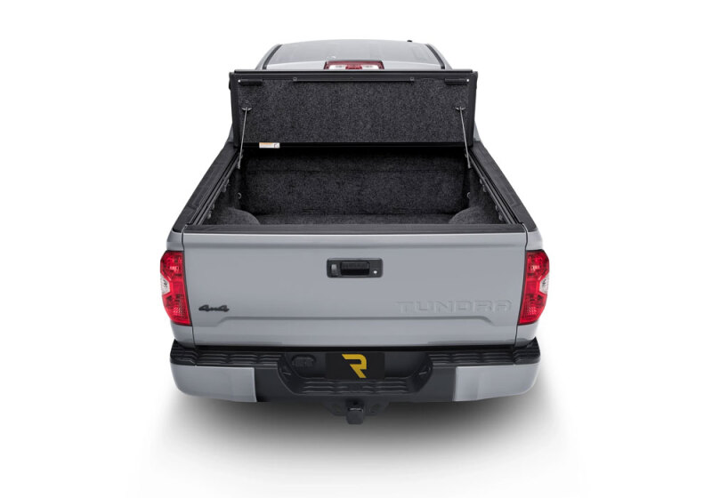 If you're in the market for sleek, stylish bed protection for your pickup, then consider the low-profile, color-matched aesthetic of a Fusion Tonneau Cover from UnderCover! This tonneau cover offers a classic tri-fold design, exceptional theft resistance, and professionally paint-matched top panels that blend seamlessly with the body of your pickup. This tonneau cover features a rugged aluminum panel construction for maximum strength and theft resistance. Unlike theft-prone soft covers, the UnderCover Fusion is cut and slash-resistant, keeping the valuables in your truck's bed safe and secure. However, this cover doesn't only resist theft but also extreme weather conditions! Integrated EPDM rubber hinges and perimeter seals prevent moisture intrusion, protecting your precious cargo against heavy rain, dirt, dust, and other contaminants. Aesthetically, this tonneau cover is tough to beat. Unlike most competitors, which feature a textured black finish that blends into the bed, the UnderCover Fusion features painted top panels that are professionally color-matched to your pickup's factory paint code, ensuring a flawless match that doesn't disappear into the bed but become a part of your pickup's body. UnderCover backs this finish with a limited lifetime warranty. Operating the UnderCover Fusion Tonneau Cover is simple and intuitive. The classic tri-fold design features three panels and three sets of hinges, which allow you to fold the cover onto itself toward the bulkhead for bed access. Where most tri-fold tonneau covers only offer 2/3 bed access, the UnderCover Fusion features integrated support arms that enable you to secure the cover against the rear window/cab for complete access to your pickup's cargo space when loading oversized cargo.