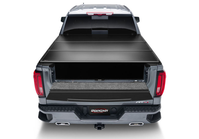 The TRIAD by UnderCover is a hard-folding truck bed cover featuring matte black panels for a sleek and innovative addition to your truck bed. Integrated perimeter seals protect your truck bed from the elements, while aluminum panels enhance the security of your truck bed and support up to 600 lbs of evenly distributed weight. The TRIAD has 2 available riding positions in the fully closed and 2/3 open position for convenience to haul and manage most any cargo. The TRIAD is fashioned with easy-to-use tailgate clamps allowing quick access to the truck bed. The TRIAD hard-folding cover comes completely assembled to provide a quick and easy installation and backed by a 3-year warranty.