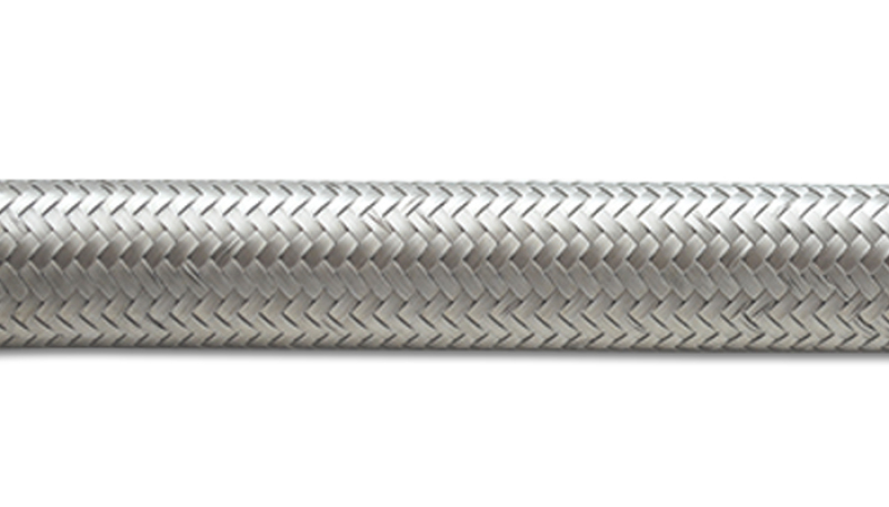 Vibrant Performance Braided Flex Hoses are available in Stainless Steel and Nylon braided covers which provide excellent abrasion resistance and surrounds a reinforced CPE synthetic rubber inner liner. Our Braided Flex Hoses are suitable for oil, water, fuel, coolant and vacuum service. Also suitable for E85 and methanol use but fumes will permeate through this type of hose when fuel is left stagnant for long periods of time. See our PTFE Flex Hose for extended E85 and methanol use. These hoses are NOT suitable for use as brake lines or other hydraulic pressure lines, nor are they suited for extended submersion in fuel or oil (not recommended for in-tank applications). Operating temperature range: -40 Degrees F to 300 Degrees F (-40 Degrees C to 150 Degrees C).