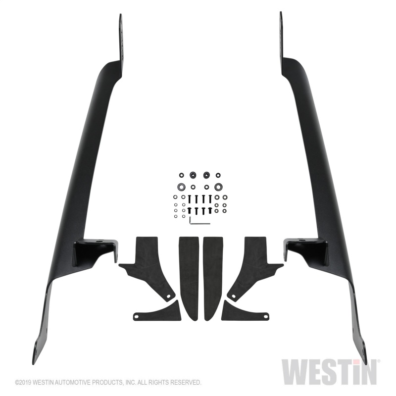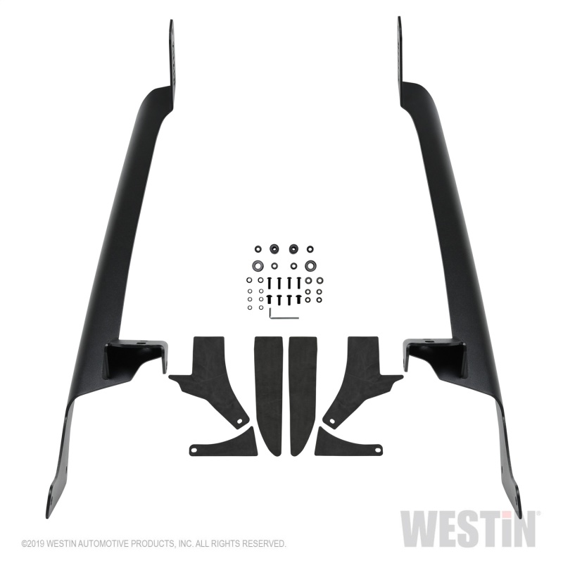 Westins Pillar LED Light Mount is set up for a 50in. LED Bar at the upper windshield level and post mount lights at the pillar level. They are made of heavy-duty 7 gauge steel and feature visible black stainless fasteners with a textured black powder coat finish.