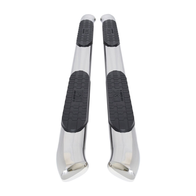 Westins Pro Traxx 5 Oval Nerf Step Bars feature a 5in. oval tube with a heavy-duty step pad that provides a wider and more secure step area. They feature 30 factory style bends that have seamless domed ends so there are no end-caps or exposed bolt heads. Applications are bolt-on installation.