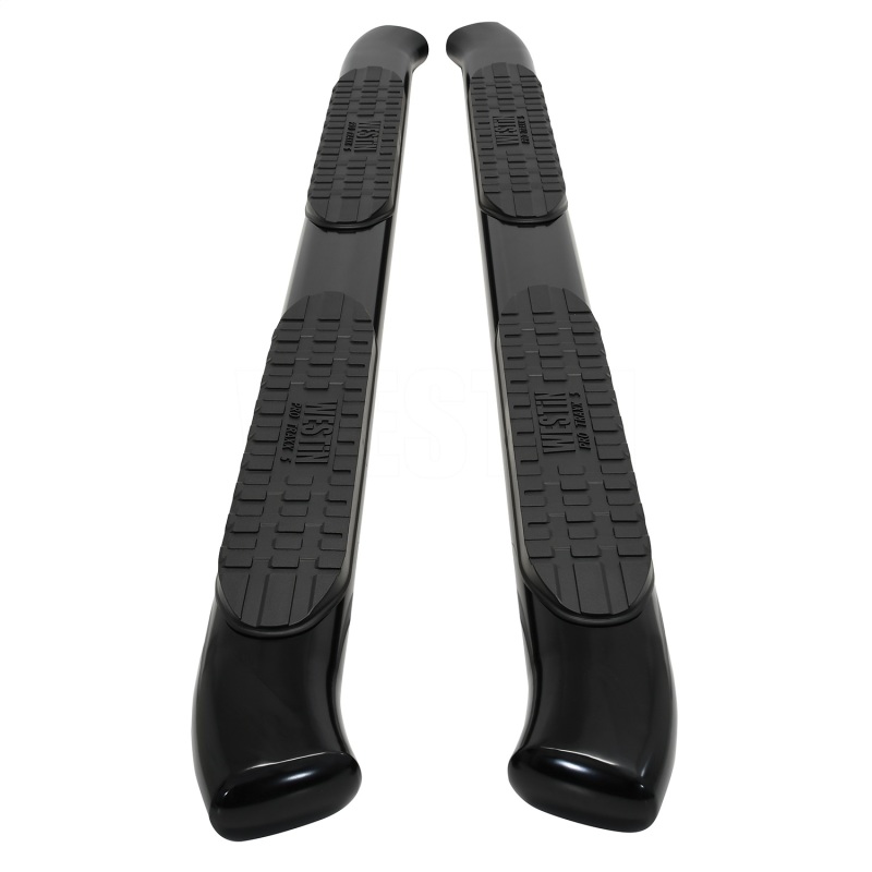 Westins Pro Traxx 5 Oval Nerf Step Bars feature a 5in. oval tube with a heavy-duty step pad that provides a wider and more secure step area. They feature 30 factory style bends that have seamless domed ends so there are no end-caps or exposed bolt heads. Applications are bolt-on installation.