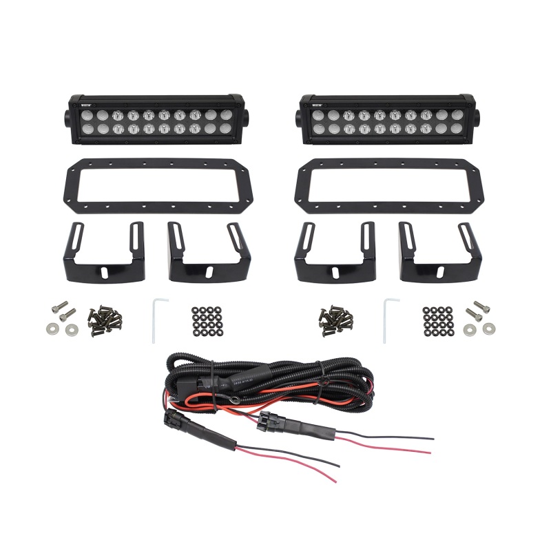 The HDX Flush Mount LED Kit with 10 B-FORCE LED Light Bars features flush mount faceplates that install directly onto the punch plate grille of Westins HDX Grille Guard. Choose the installation method that best suits your desired LED light presentation. Cut-out punch plate or direct bolt-on. Kit also includes adjustable slider brackets, dual connecting wiring harness, and mounting hardware.