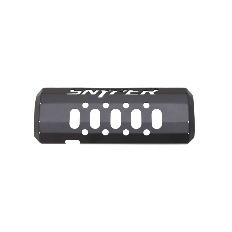 Westins Snyper Muffler Skid Plate protects the Jeep(R) muffler from damage during offroad driving or rock crawling. The 7 gauge steel plate features a laser cut Snyper logo and other openings that help minimize weight, and has formed edges for maximum strength. Available for 2 door or 4 door Jeep(R) Wrangler. Optional gas tank, oil pan, transfer case and muffler skid plates available (sold separately).