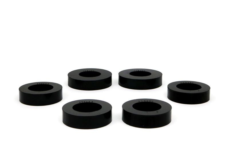 This easy to install kit is designed to change the inclination of the rear sub-frame whilst reducing bushing compliance. By locating the rings in different planes it possible to induce rear squat (maximum traction) or anti-squat (drift) properties. This product may induce increased NVH levels.