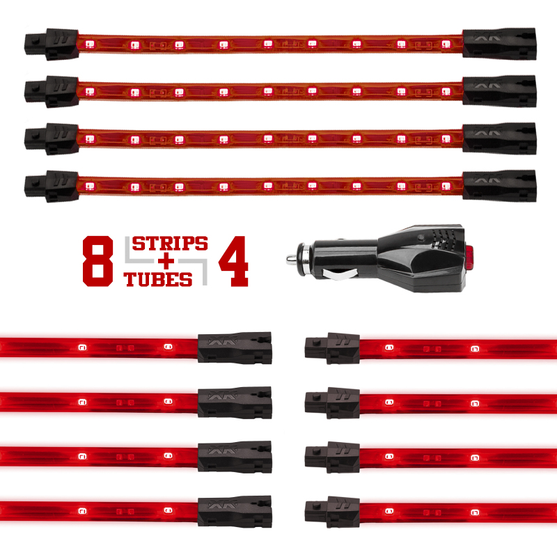 Product Description XK Glow Single Color XKGLOW UnderglowLED Accent Light Car/Truck Kit Red - 8x24In Tube + 4x8In Strip